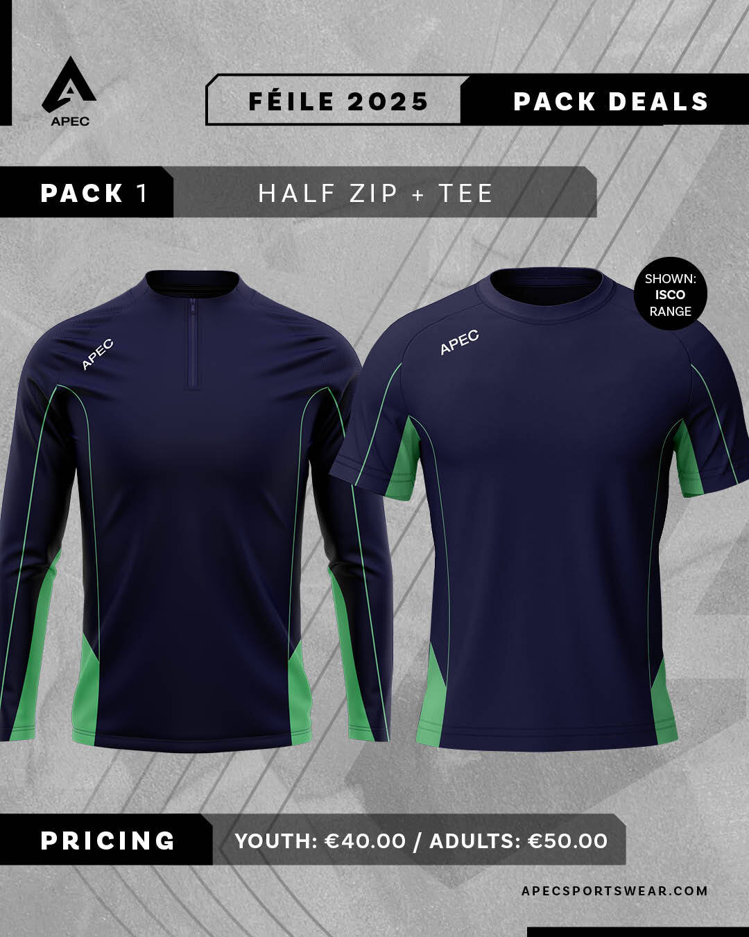 Pack includes Half Zip and Training Tee